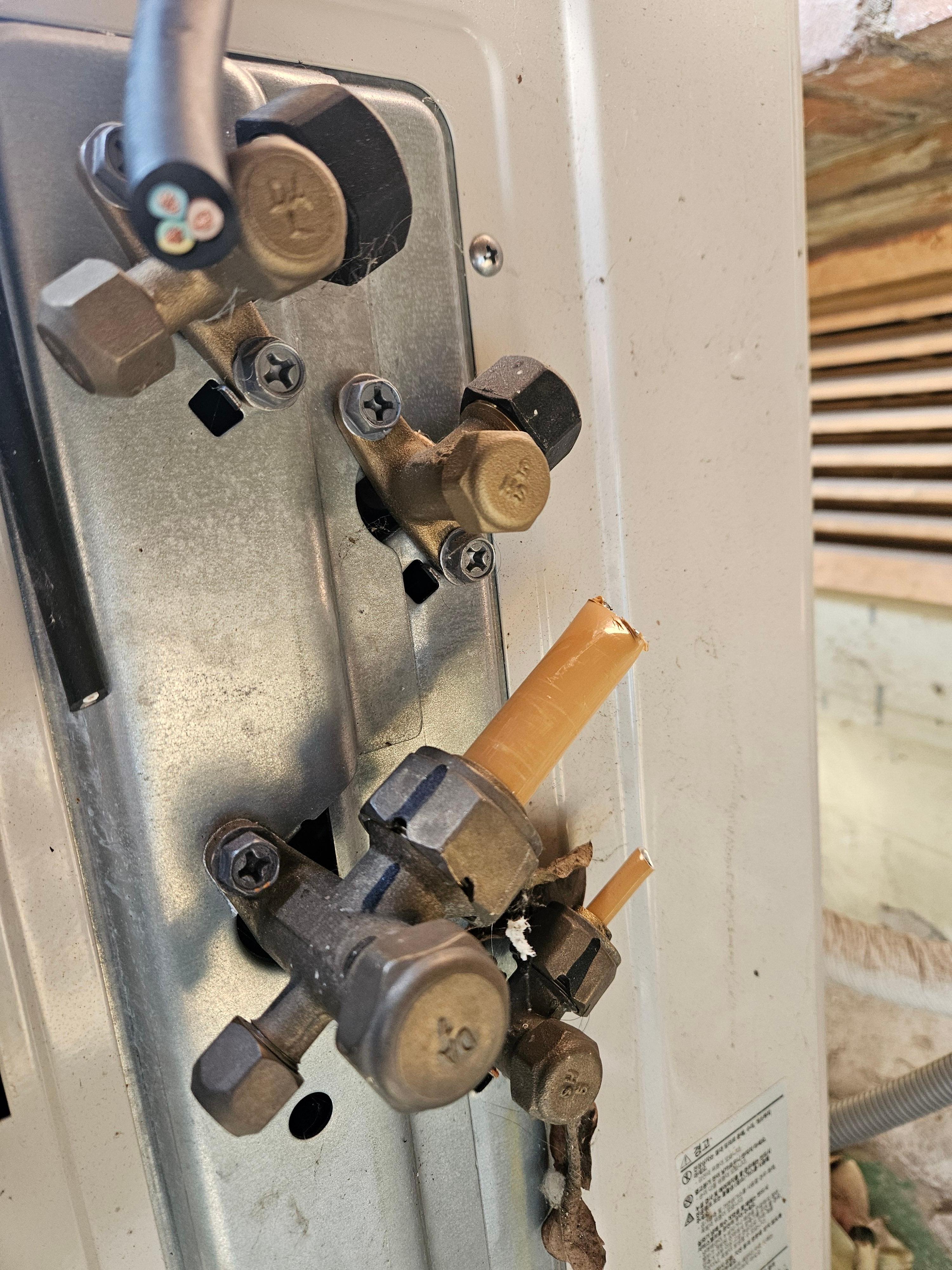 아래 두개는 스탠드 에어컨의 배관을 연결합니다. 삼성 스마트 링크로 연결되어 있는 것을 볼 수 있습니다.